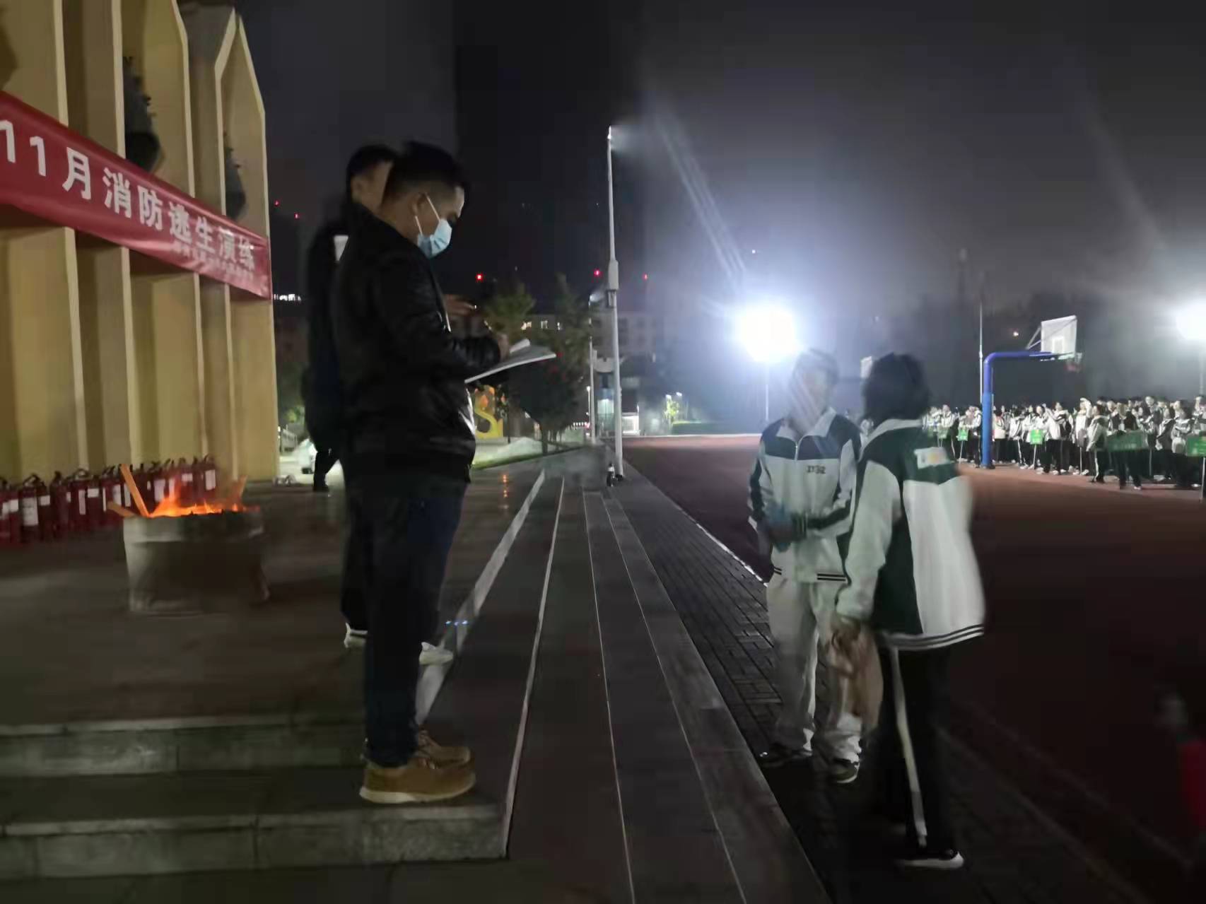 校长李明德对消防逃生演练进行部署