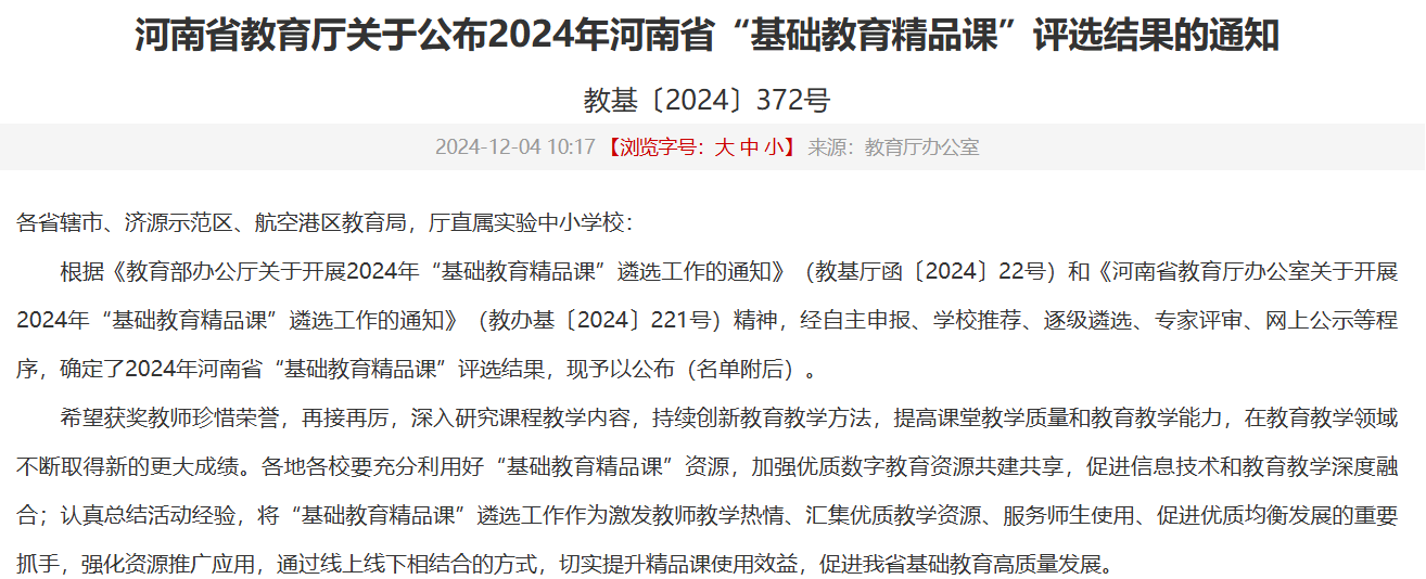 近日,从省级教育部门传来喜讯,18luck官方客服端下载教师在河南省教育系统2024年度教学技能竞赛、2024年河南省基础教育精品课、河南省第二十八届教育教学信息化交流活动中,凭借出色的表现与深厚的实力,一举夺得三项一等奖,不仅展现了该校教师在专业领域的精湛技艺,也彰显了该校在教育信息化道路上持续探索的精神风貌。