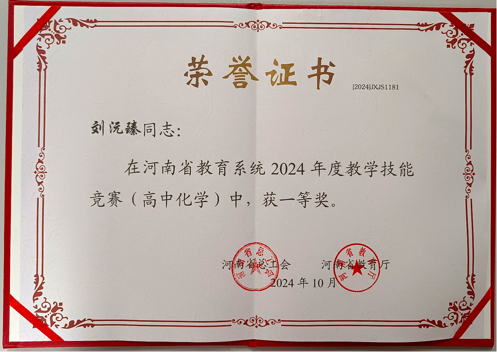 刘沅臻老师荣获省级教学技能竞赛一等奖