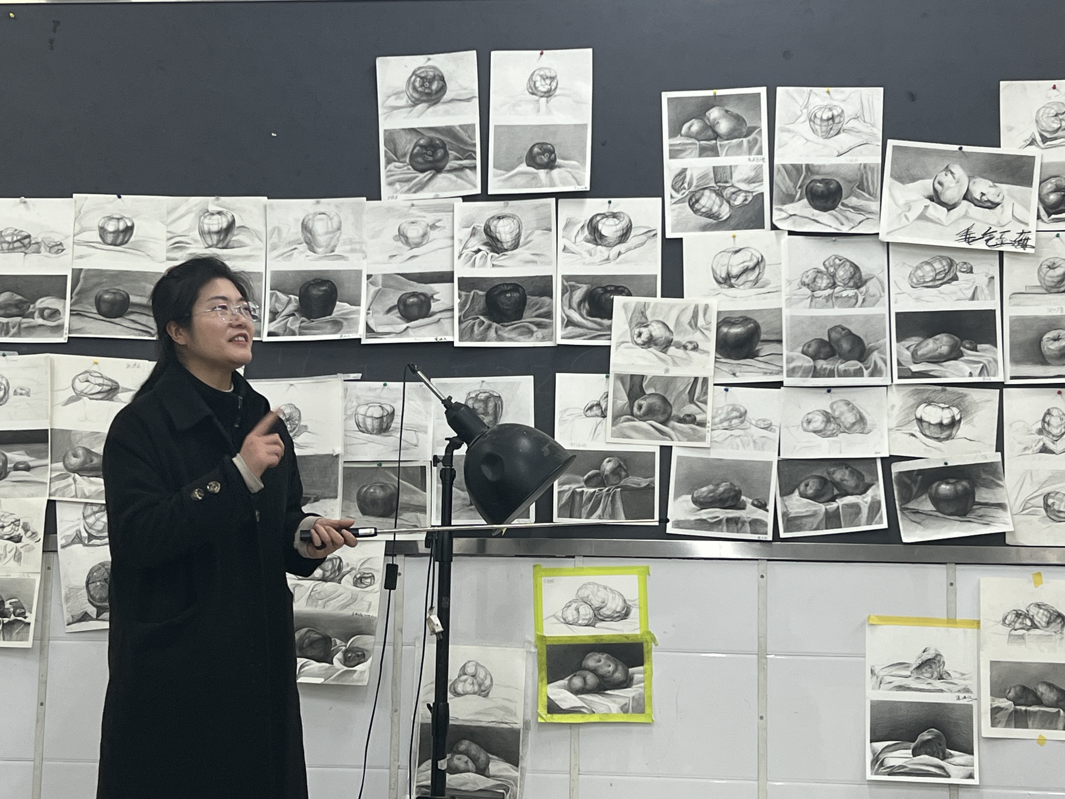 活动中,李丽娜老师首先详细阐述了素描静物单体结构的基础知识,随后详细介绍了上周一班单体结构向全因素的训练方法。她通过讲解,将复杂的素描技法变得易于理解,让在场的老师们受益匪浅。高一美术组的老师们认真聆听,积极互动,纷纷就自己在教学中遇到的问题和困惑向李丽娜老师请教和交流。大家踊跃发言,展开了热烈的讨论。