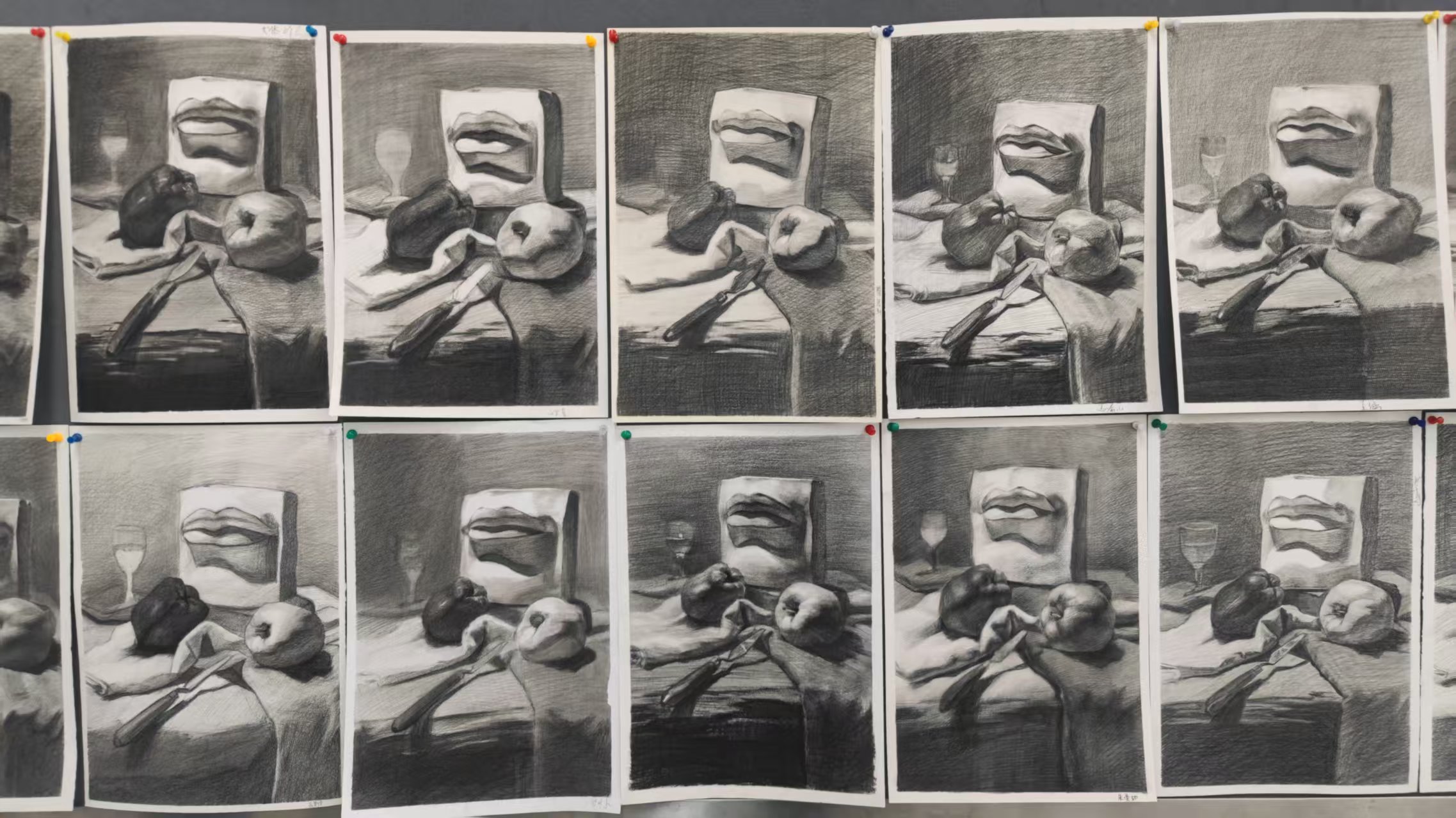 47日上午,高一美术教师在高一十班教室里开始了新的一周的教研活动。本次教研开展的非常务实和成功,各位老师都在教研过程中各抒己见,对十班现在这个阶段的问题和流程分析提出自己的意见,也对美术高考考试改革的考查内容做了讨论和研究,对每一位美术教师也是一次教学成果的检验。在讨论考试形式与内容的时候,有的提到将期中考试与高考内容相联系并将平时所学运用到应试之中,提升学生的心理素质,为将来的高考考试做第一步准备;有的老师坚持考试要考察最需要解决的教学实际问题,同其他班级协同备考等等。但考察的形式依然是坚持用写生的方式去引导日常教学,真正考察学生的观察能力和审美能力。